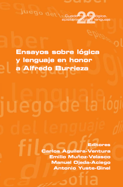 , Antonio Yuste Ginel (coord.)Este libro es fruto de un esfuerzo colectivo para rendir homenaje al que, para las personas que lo escribimos, ha sido un referente personal y académico, bien como maestro, bien como colega, o como ambas cosas: el profesor Alfredo Burrieza Muñiz. El volumen contiene diez capítulos que versan sobre distintos aspectos de la lógica y su relación con el lenguaje e intentan sintonizar con la visión rica y multidisciplinar (matemática, computacional, filosófica y lingüística) que el homenajeado ha defendido de esta ciencia a lo largo de su carrera. La obra cuenta con contribuciones de Carlos Aguilera, Pedro Chamizo, Claudia Fernández, Huberto Marraud, Emilio Muñoz, Ángel Nepomuceno, Manuel Ojeda, David Pearce, Franscisco Salguero, Fernando Soler y Antonio Yuste.